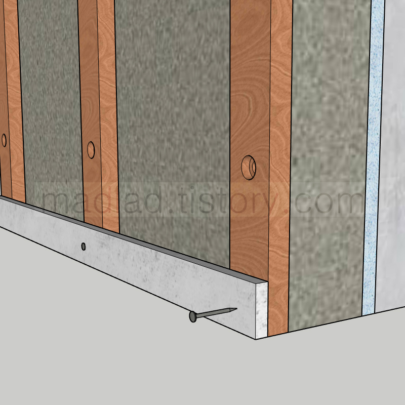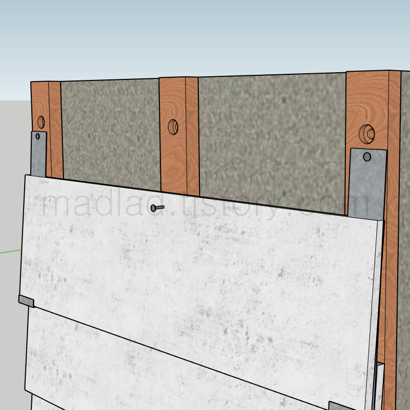 그림은 일반 못이지만(나사못은 제가 그리기 어렵네요.) 나사못으로 고정해줍니다.