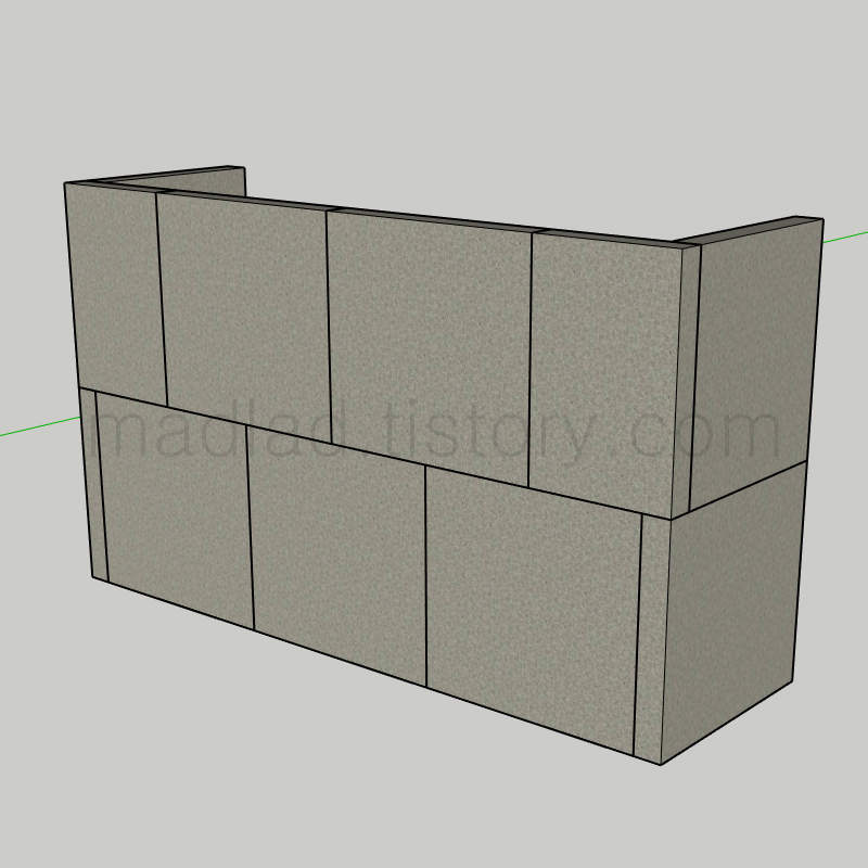 각상을 두 겹으로 하여 그 사이에 스페이서를 넣어주며 수평자를 사용하여 수직을 맞추면 됩니다. 스페이서로 사용 하기에는 얇은 합판이나 창호 시공용 PVC 고임 부자재를 사용하면 좋습니다.