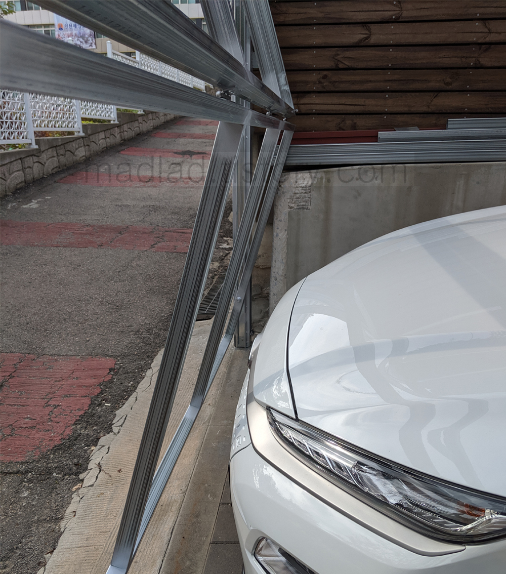 이렇듯 아무래도 좁은 야외에 주차 대문을 설치하려면 고려할 점이 많습니다.