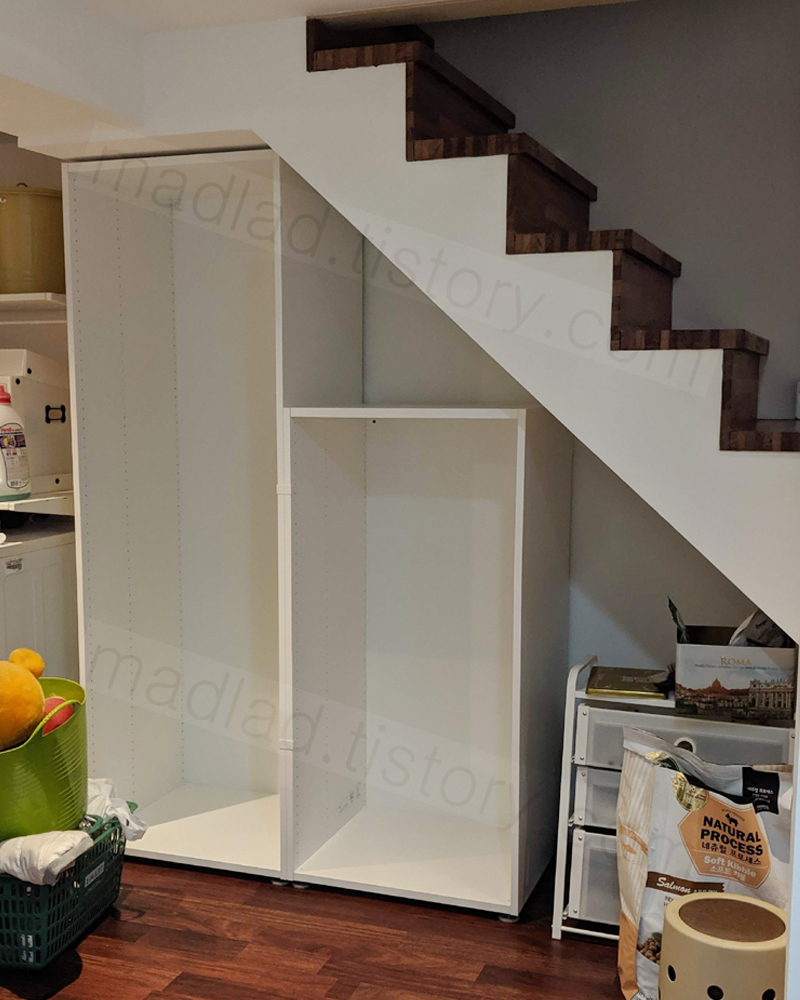 계단 밑의 남는 공간의 수납을 이케아 플랏사로 해결하기